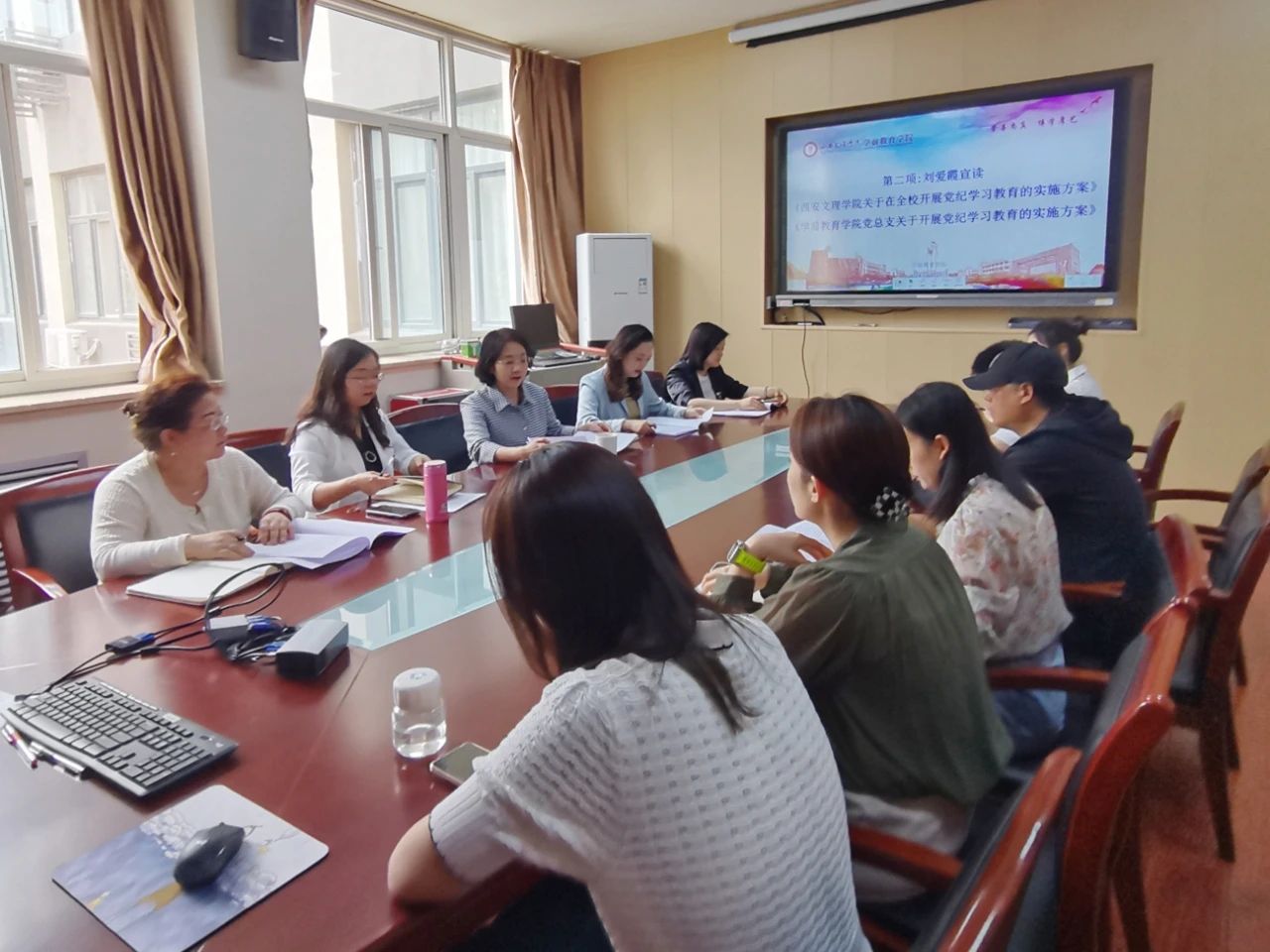 4月23日下午,学前教育学院党总支召开2024年党纪学习教育部署会。会议由党总支组织委员张熔主持,学院领导班子成员、全体党总支委员、各支部书记、支部委员及师生党员代表参加了本次会议。副院长路娟同志带领与会党员学习了中共中央印发的《关于在全党开展党纪学习教育的通知》精神,并指出,加强党纪学习教育,不仅是全面从严治党的根本要求,也是促进学院教育教学发展的关键,全体党员要深入理解和内化《中国共产党纪律处分条例》...