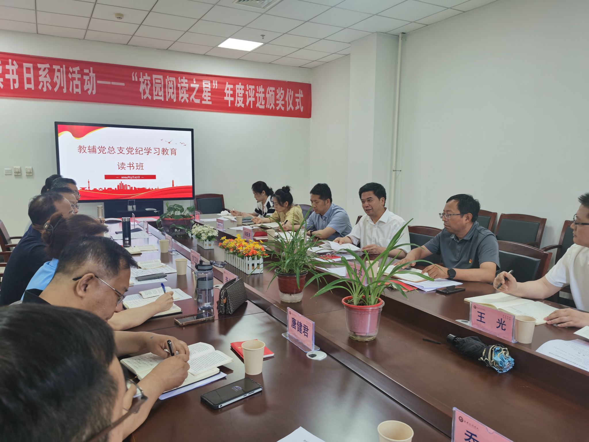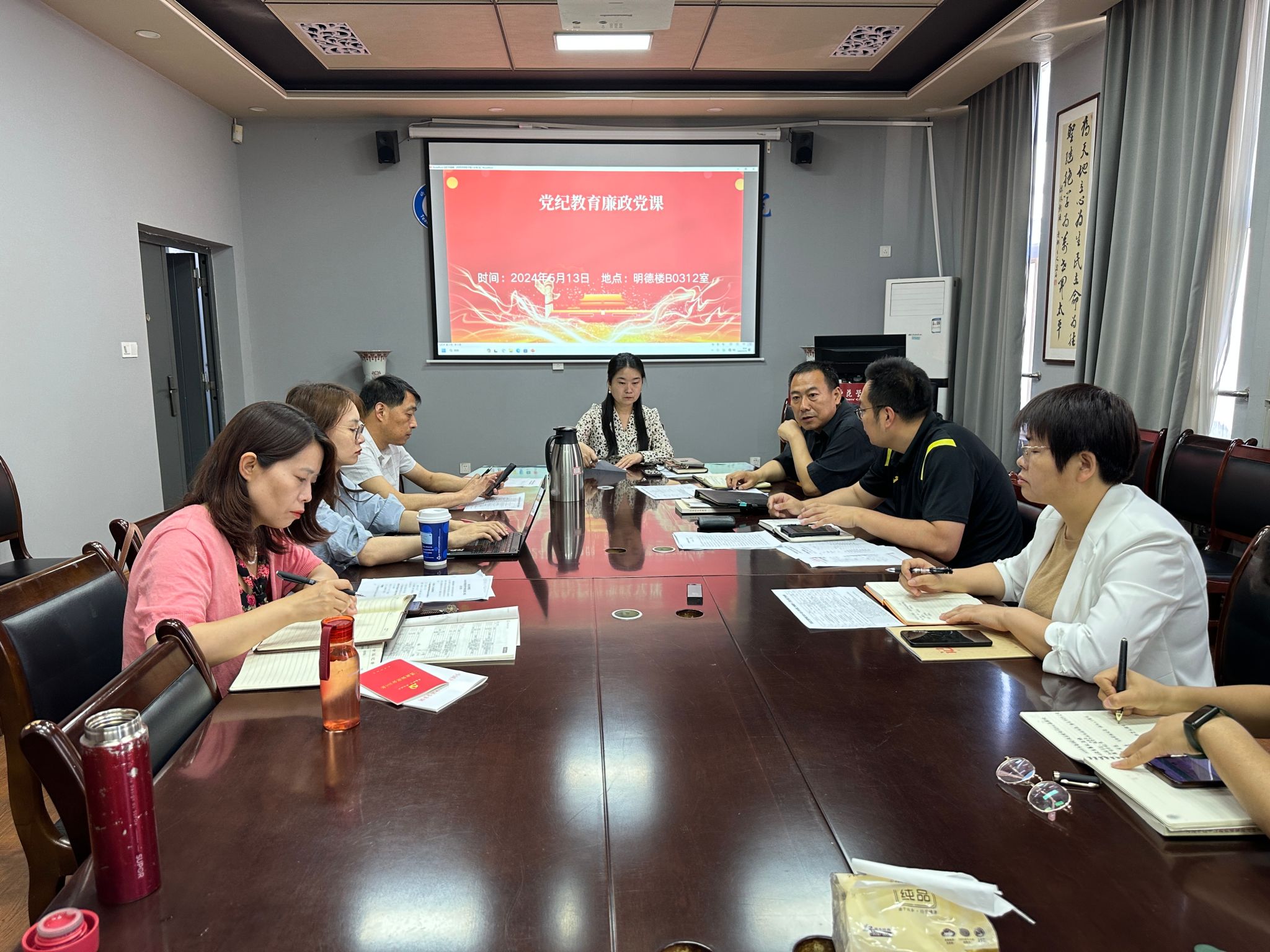 6月3日上午,离退休党总支在行政楼三楼党员活动室召开了离退休党支部书记党纪学习教育专题会议。离退休党总支委员、离退处全体工作人员及各离退休党支部书记参会,会议由离退休党总支书记周小娟主持。周小娟同志领学了习近平总书记关于党纪学习教育的重要论述。将市委老干局《关于组织离退休干部党员参加党纪学习教育有关事项的通知》的精神,做了简明扼要的解读。并就离退休党员参加党纪学习教育的必要性和重要意义进行了说明。张智敏同志领学了《...
