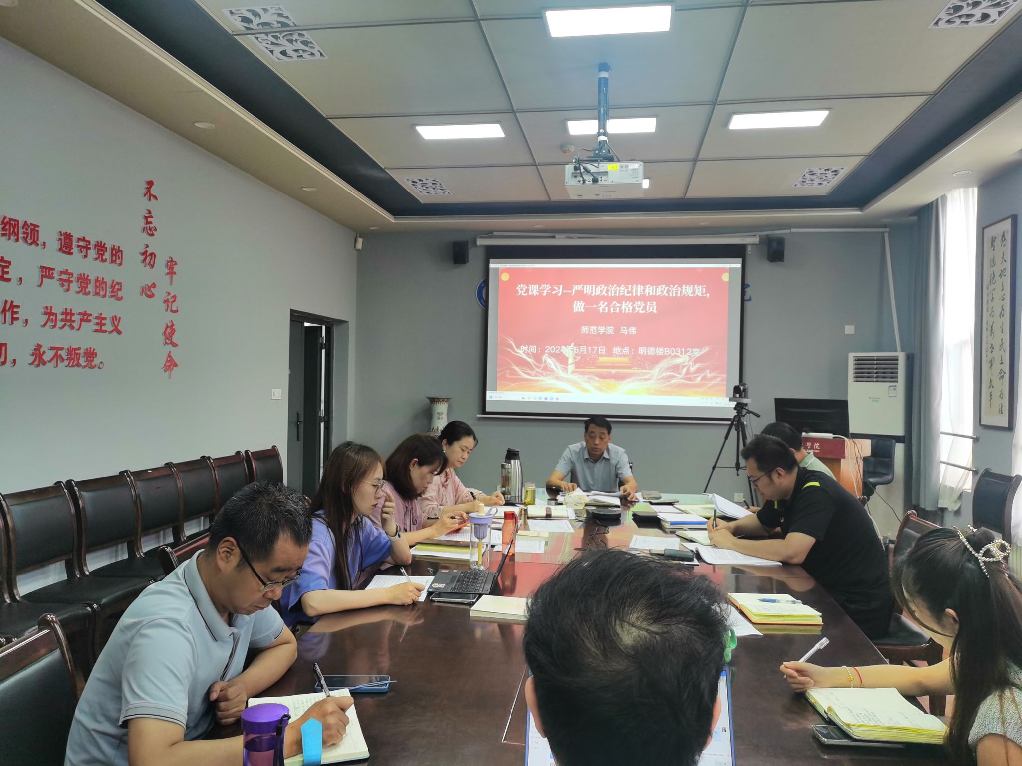 6月17日上午,师范学院召开党纪学习教育第六次集体学习会,会议由党总支书记武军安主持,学院领导班子成员及各支部书记参加了学习会。会议首先进行“第一议题”学习。武军安带领与会人员学习习近平总书记在重庆考察时有关党纪教育的重要讲话精神;院长曹莹领学习近平总书记在中共中央政治局第十四次集体学习时的重要讲话精神。其次,学院班子成员逐一原原本本、逐章逐条领学了《坚持以人民为中心的发展思想》、习近平总书记关于“两个结合”...