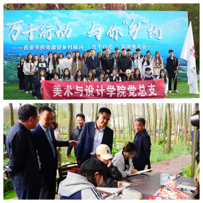 10月9日上午,美术与设计学院党总支书记魏夫涛、教工党支部书记许雷、学生党支部书记呼潇、教师代表王婕弘等40余师生党员,受邀赴蓝田县前卫镇将军村参与西安市抓党建促乡村振兴“万千行动”现场推行会,学院结合专业...