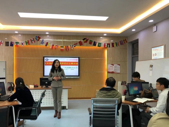 为落实学校“七个五”工作机制,更好地发挥学校智库及学科专业优势为西安发展提供服务,3月30日,外国语学院在新丝路教室召开《发现西安》翻译项目研讨会,副院长熊国芳及翻译系师生参加。 本次研讨会由浙江卫...