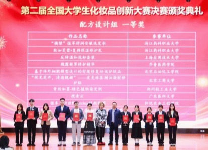 近日,第二届全国大学生化妆品创新大赛在北京工商大学(良乡校区)圆满落幕。经过激烈角逐,我校化学工程学院参赛团队表现优异,在此项赛事中荣获全国一等奖1项,全国三等奖1项,优秀指导教师1人。全国大学生化妆品创新大赛由教育部轻工教指委指导,中国日化协会主办全国性比赛,共有来自全国各高校400余支队伍参赛,参赛者分为产品创意组、配方设计组、包装宣传组等三个组别,围绕“创新、绿色、安全”的主题展开激烈角逐,经过初赛选拔,...