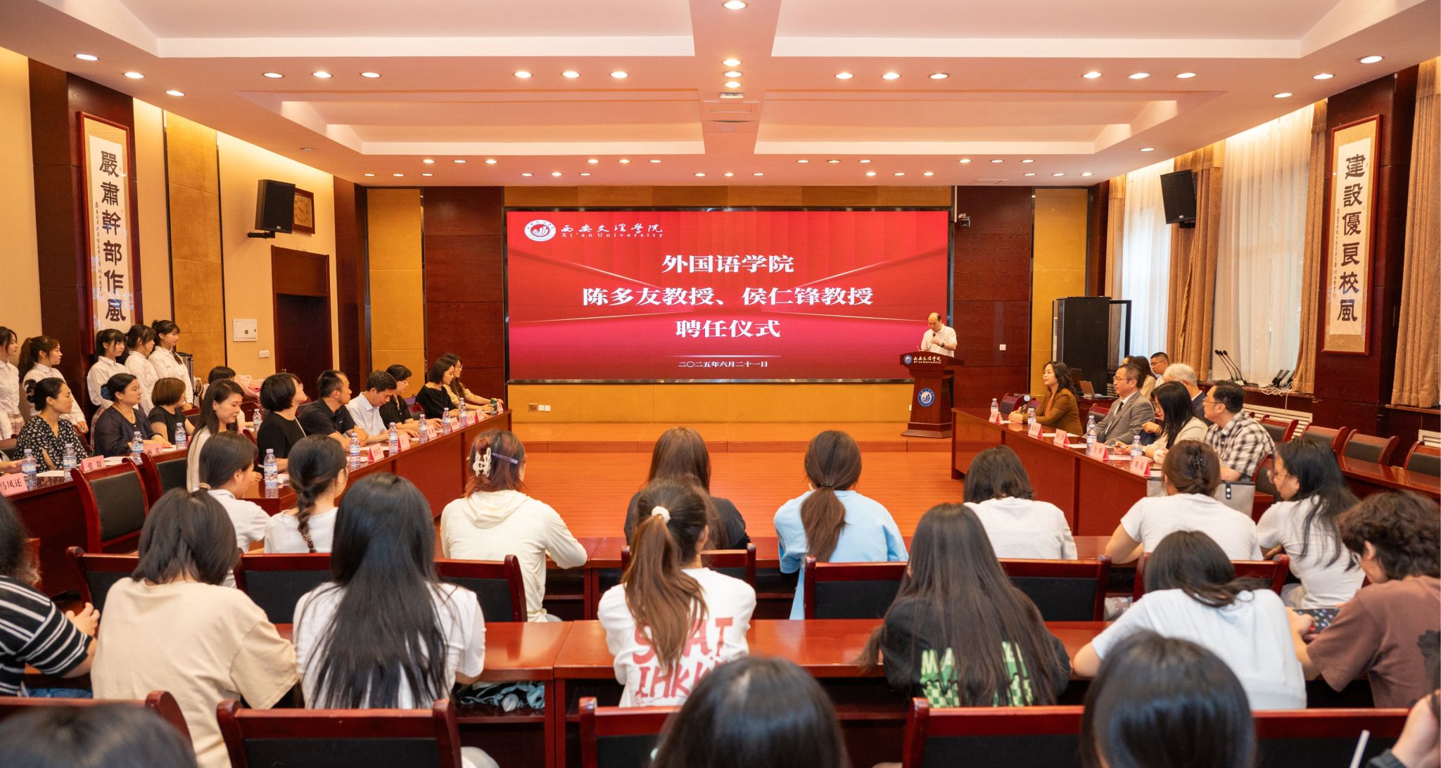 6月21日上午,外国语学院举行了陈多友教授、侯仁锋教授的聘任仪式。校长陈刚,校党委委员、人事处处长杨姗姗以及外国语学院日语专业师生参会,会议由外国语学院院长韩红建主持。陈多友,广东外语外贸大学日语语言文化学院名誉院长、东方学研究院院长、二级教授、博士生导师、博士后导师,教育部高等学校外国语言文学类专业教学指导委员会委员,《日语学习与研究》杂志编委,《东亚文化研究》主编。主持国家社会科学基金项目等各类项目10余项。...