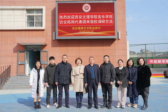 为拓宽毕业生就业渠道,深化校校合作,助力毕业生高质量就业,3月13日下午,音乐学院党总支书记贺星、教学副院长郭瑞玺、党总支委员高婧、音乐表演专业系主任王翊、学工办主任董小蕾前往西安博雅艺术职业高中开展访企拓岗,西安博雅艺术职业高中校长张胜强、副校长赵伟、副校长兰乐、音乐教学部主任李娜陪同参观并交流座谈。