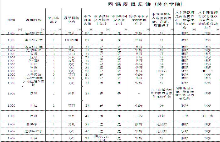 体育学院根据专业课程教学工作特点,提出“两大块,四方面”的线上教学整体工作方案,即公体、专业两大块,场地器材依赖型项目、非场地器材依赖型项目、专业实践型课程、专业理论型课程四个方面,分别提出了不同的线上教学要求。学院召开线上教学专题工作会,明确组织机构、厘清人员分工,全院总动员,全力克服体育课程线上教学难度大的问题。建立并完善线上教学督导体系,制作线上听课记录模板、学生信息反馈模板,要求教学委员成为线上教学督导员,每周听课不低于2课时,需兼顾专业课和公体课;教师每周听课不少于1课时,专业课和公体课交替进行,为把控教学质量保驾护航。