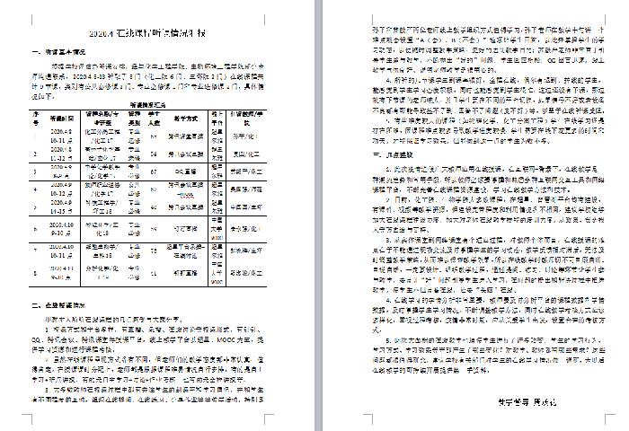 学校坚持“日统计—周汇报—月反馈”的常态化在线教学质量监控制度。各教学单位每日统计在线教学信息并上报教务处备案;教务处每周发布在线教学简报,各教学单位每周召集教学例会,交流线上教学经验,加强线上教学研判,及时总结经验;教务处每月根据问卷调查结果和校级教学督导听评课情况撰写并发布在线教学质量报告。学校在常态化监控基础上进一步加强在线教学质量监控与研判,4月初组织各二级学院总结在线教学阶段性工作,提炼经验、反思问题,梳理下一步改进工作思路。