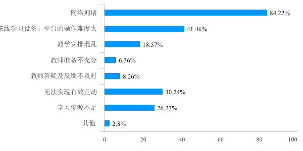 学生认为在线学习时,遇到的困难和问题中比例最大的两个是网络拥堵和在线学习平台和设备的操作难度大。尽管教学平台技术支持服务有了很大改善,但线上教学平台的稳定性仍然是影响在线教学的最主要因素之一。