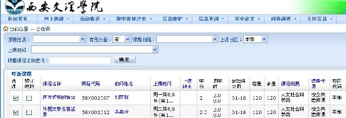 6.请各学院通知学生务必在规定时间内,由本人按要求选课,不得代选,如有疑问请各学院与教务科联系。