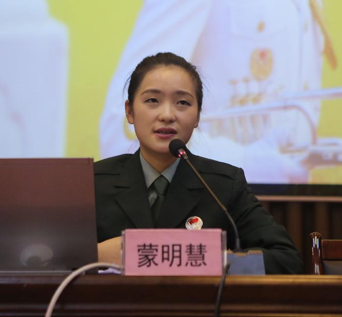 报告会上,蒙明慧同学以真情实感向同学们汇报了自己从初入军营到参加阅兵大典的经历,每个细节都感人肺腑,尤其是讲述进驻阅兵村进行艰苦训练的过程,让在座的师生感动敬佩。谈到战友们训练的认真劲时,她说,“不要觉得自己付出了多少就算刻苦,永远有比你更刻苦的人,刻苦是无底线的!”正因为她的这种精神,蒙明慧同学在部队时,在多次业务考核中取得优异成绩并得到上级领导的表扬,获多项表彰,在执行各项任务中表现突出,受到多家媒体关注报道。