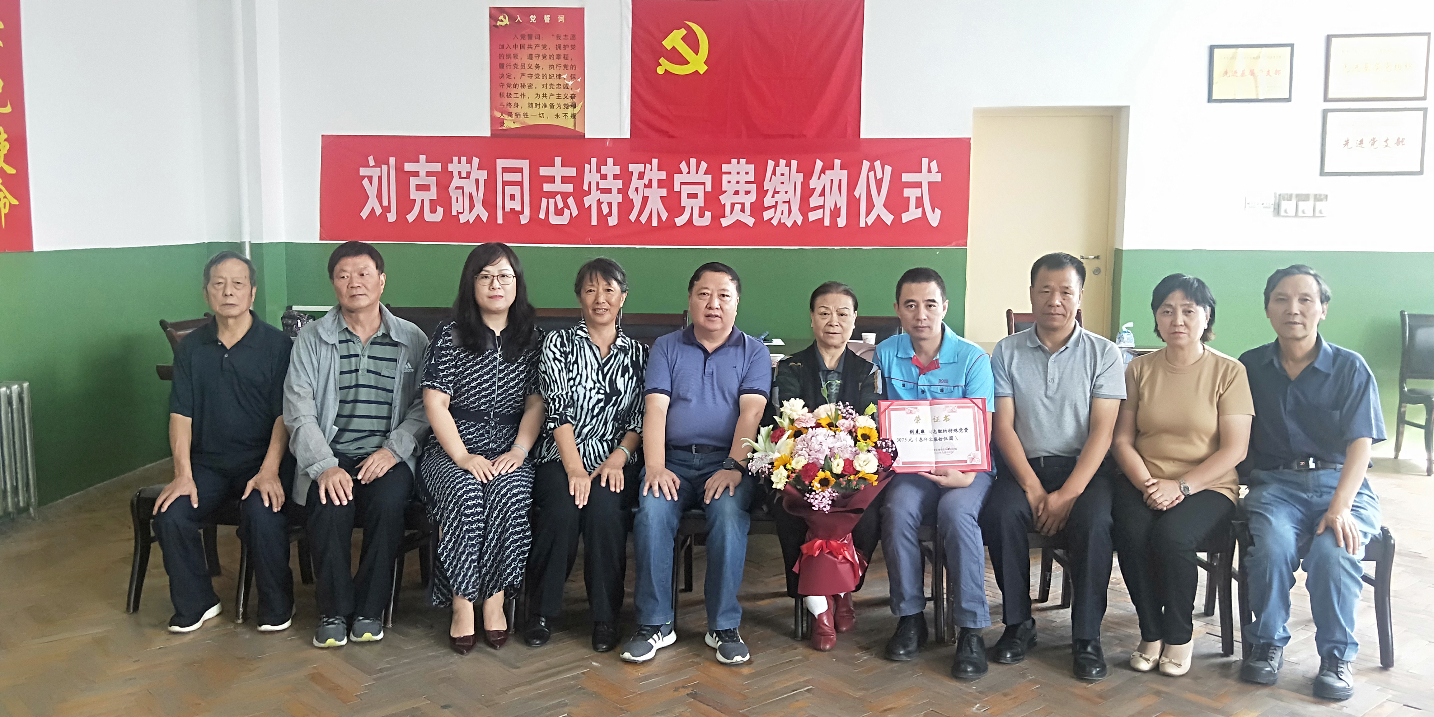 刘锐军接收了刘克敬夫人张彤交纳的特殊党费并颁发了特殊党费证书(收据),张智敏向刘克敬夫人赠送了鲜花。举行此次仪式,不仅是完成刘克敬向党组织交纳一笔“特殊党费”的个人愿望,体现一名退休老党员对党深厚感情的具体行动,更是一名老党员“不忘初心,牢记使命”用一生践行入党誓词的生动党课,是开展全面从严治党,加强政治建设、思想建设的生动教材,让我们接受了一次鲜活的党性教育,彰显了党性的光辉。