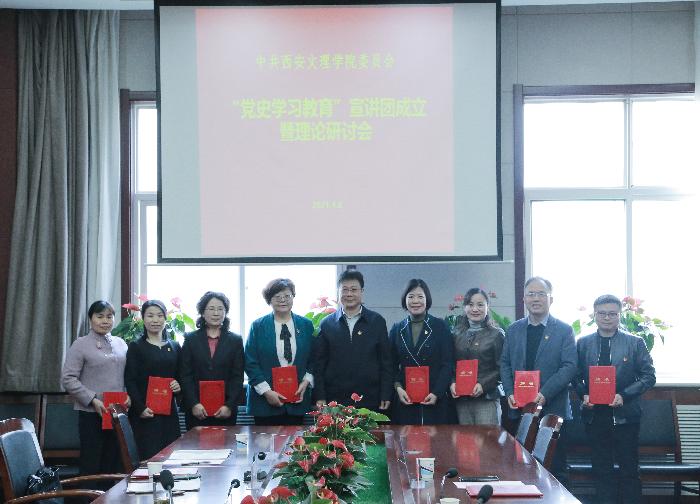 党史学习教育启动以来,我校的相关专家、教授受到了省、市相关部门的高度关注和认可。张天社教授先后被聘为“陕西省中共党史学会常务理事”、“陕西党史专家库专家”。张天社教授和马克思主义学院院长张军学、孟英教授、姚嘉副教授获聘“西安党史专家库”专家,张瑞为四位专家颁发了聘书并向我校党史学习教育领导小组办公室捐赠了党史文献资料。袁卫敏宣读了学校《关于成立中共西安德赢VWIN学院委员会党史学习教育宣讲团的决定》,李忠良为学校宣讲团成员颁发了聘书。