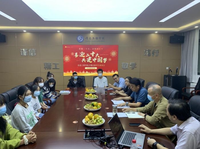 少数民族同学首先作了自我介绍。李昉代表学院向同学们致以节日问候,欢迎2022级新同学在信息工程学院开始大学生活,鼓励大家铸牢中华民族共同体意识,画好民族进步“同心圆”、共筑民族复兴“中国梦”,像“石榴籽”一样紧密团结在一起。杨渭清希望同学们在大学期间以学习成才为第一要务,为将来回报祖国,建设家乡打下坚实基础。李承介绍了学校节日期间的防疫工作要求,希望大家合理安排假日学习生活。张力宁在会议上领学了习近平总书记在2022年7月中央统战工作会议上发表的重要讲话精神,2021年以来在西藏、新疆地区考察时就民族工作做出的重要指示。