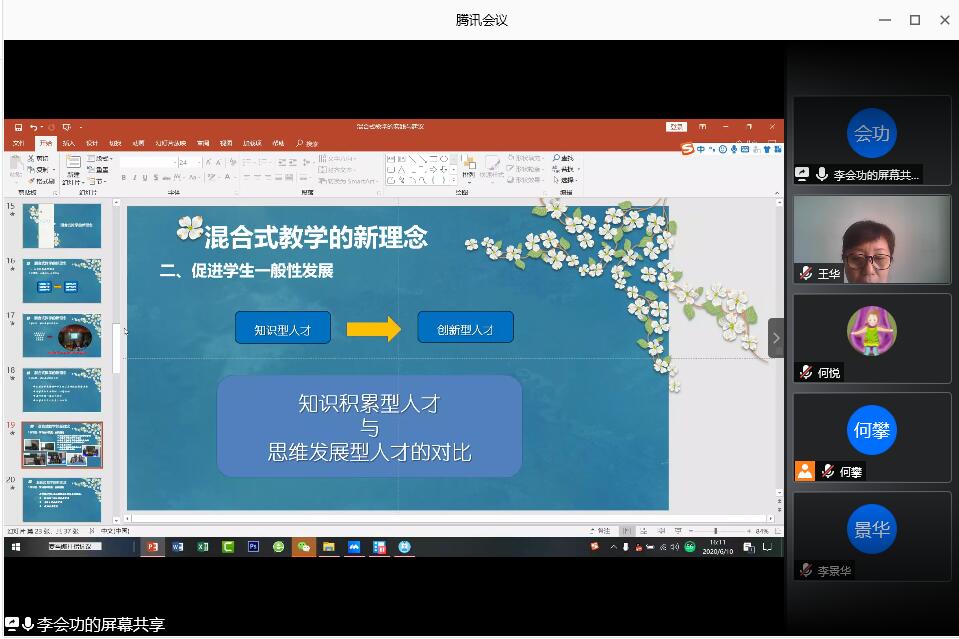 6月10日下午,师范学院通过腾讯会议平台举办线上线下混合式教学课程建设培训会,学院全体教师参加,副院长王华主持。本次培训会特别邀请“陕西省中小学教师信息技术应用能力提升工程”专家组成员,小学教育系教师李会功,为全体教师做了题为《混合式教学的设计与实践》的讲座。