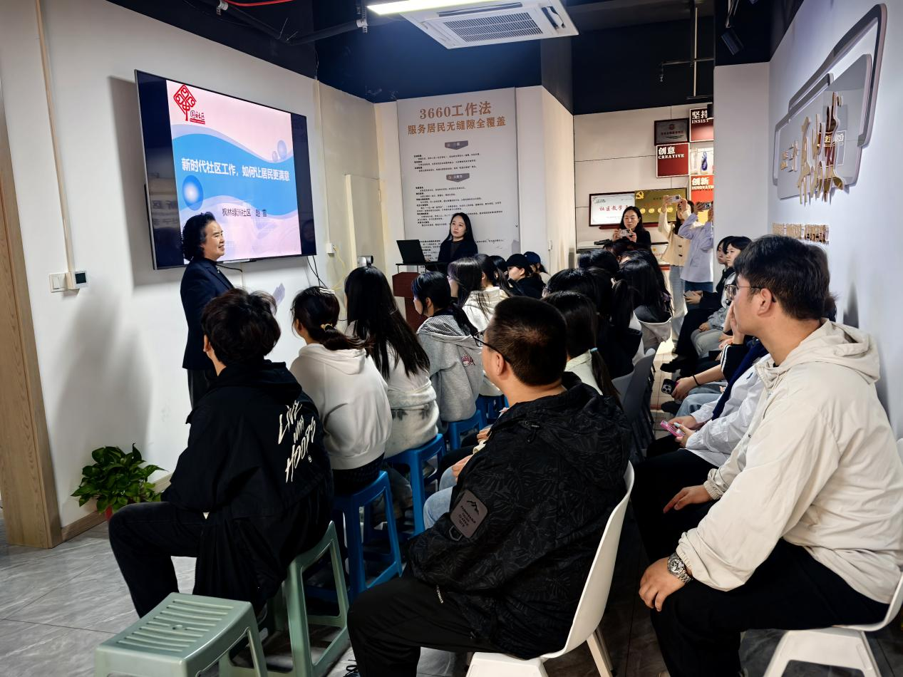 高新区枫林绿洲社区主任赵雪热情接待了全体师生,以“新时代社区工作”为题,围绕“智慧社区与多元治理”,给学生讲了一堂生动的“专业实践课”。课程使学生全面深入的了解了新时代社区工作的主要内容,深刻感悟到党联系服务群众的“最后一公里”如何落地生根。