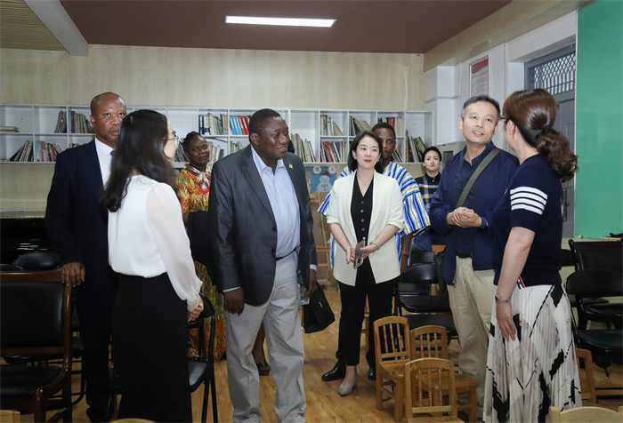 随后,马乌拖?阿沃克一行参观了我校历史文化旅游学院、学前教育学院、美术与设计学院实验实训室及展厅。