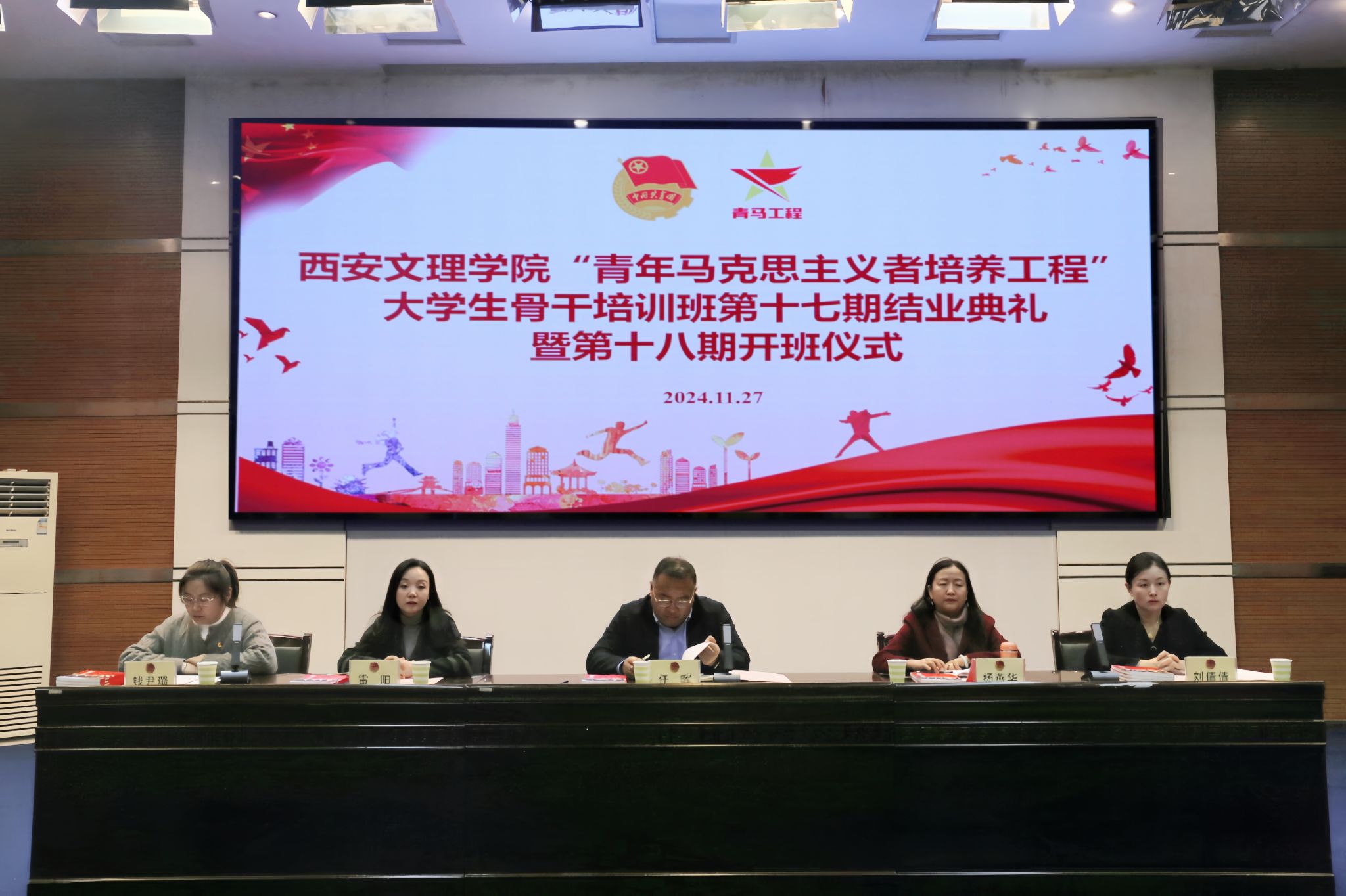 会议宣读了《西安德赢VWIN学院“青年马克思主义者培养工程”第十七期大学生骨干培训班优秀成员表彰决定》《西安德赢VWIN学院“青年马克思主义者培养工程”大学生骨干培训班学员考核细则》。与会领导为第十七期青马班优秀学员代表颁发荣誉证书,并向第十八期学员代表赠送学习书籍,寄语新学员们以书为舟,扬帆远航。学员代表发言并交接旗帜,标志着新一期培训班的正式启动。