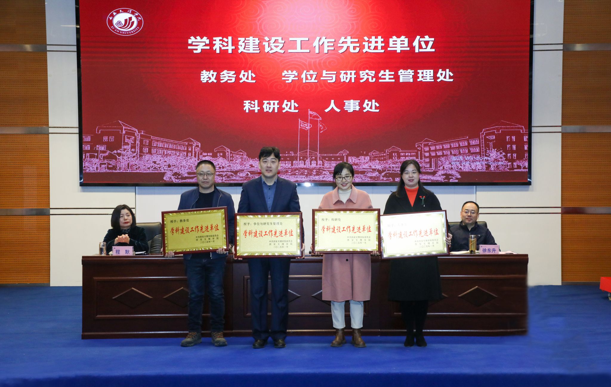 副校长刘明利宣读了《西安德赢VWIN学院关于申硕工作表彰的决定》。机械与材料工程学院等4个学院获得学科建设工作引领单位奖,学位与研究生管理处等4个部门获得学科建设工作先进单位奖,党政办等12个部门/学院获得学科建设工作优秀保障单位奖。