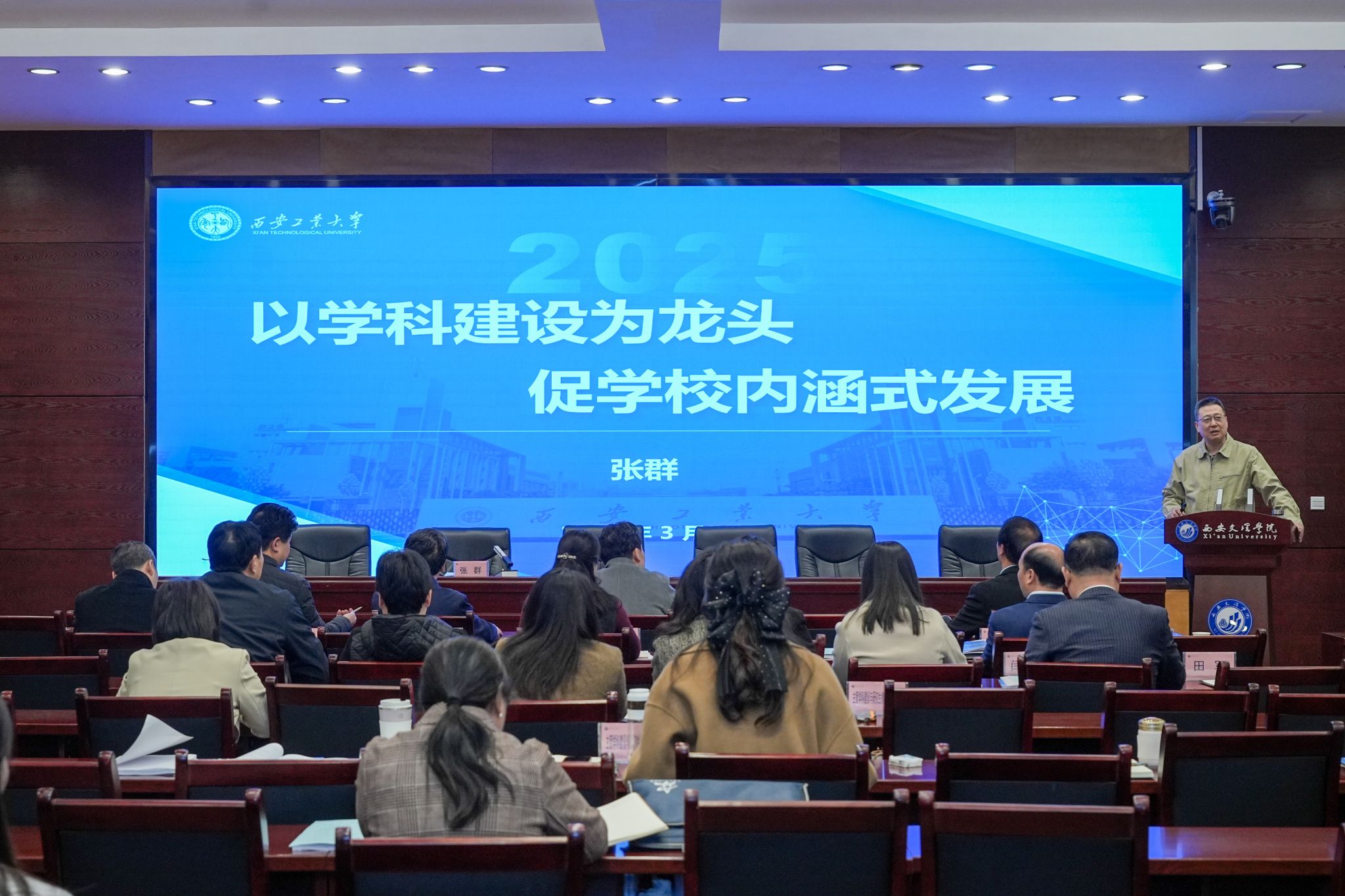西安工业大学原副校长、陕西省学位委员会委员张群教授作了《以学科建设为龙头 促学校内涵式发展》的专题报告。从学科内涵及发展阶段、全国及陕西省学科状态、西安工大历程经验和做法、西安德赢VWIN拟申报学位点现状及建议等方面进行了深入解读,为学校学科建设提供了新的思路和方法。