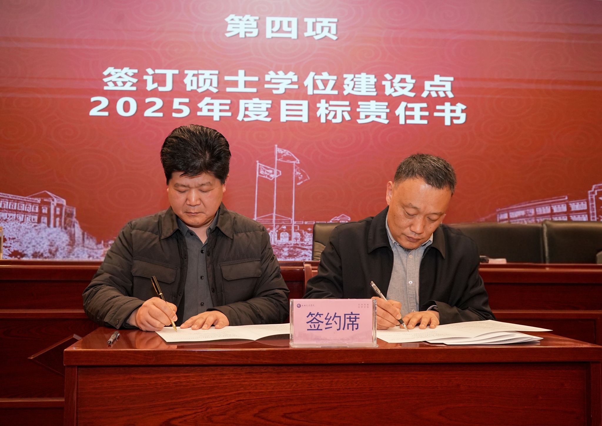 3月27日下午,学校召开2025年学科建设与研究生教育工作部署会。校长陈刚出席会议,研究生教育特聘专家张群,相关职能部门负责人,各学院院长、分管副院长,省市重点(一流)学科平台、学科交叉建设点的负责人以及第二批申硕学位建设点骨干教师参加。陈刚向2024年获批的学科交叉建设点授牌,副校长刘明利与第二批申硕学院签订了2025年度申硕学位建设点目标责任书。会议由刘明利主持。