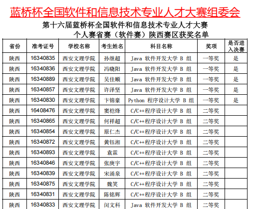 近日,第十六届蓝桥杯全国软件和信息技术专业人才大赛组委会公布省赛(软件类)获奖名单,我校信息工程学院学生获得了省级一等奖5项、二等奖20项、三等奖30项的好成绩,创下参赛规模与竞技水平新高,获得省级一等奖的学生将代表学校参加国赛。