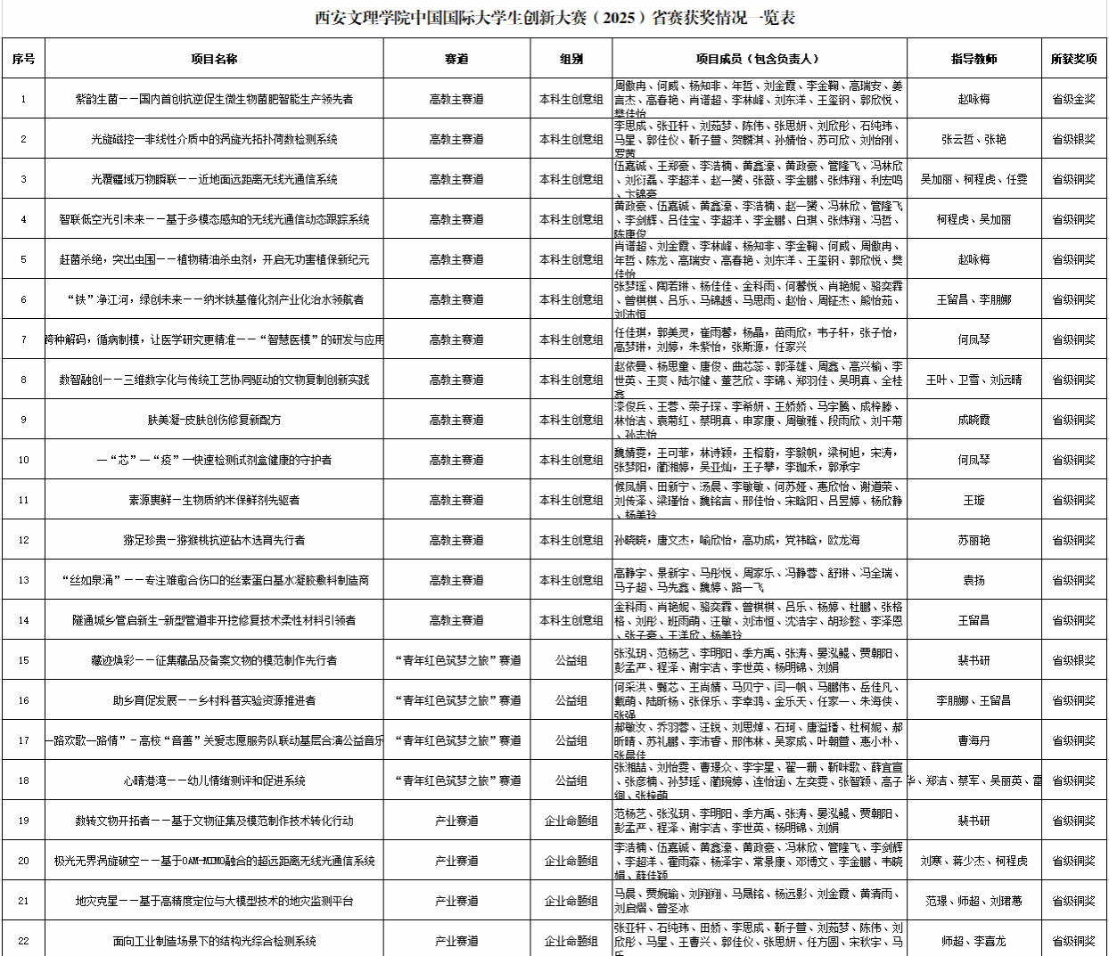 近日,省教育厅对中国国际大学生创新大赛(2025)陕西赛区省级复赛拟获奖项目进行了公示,我校推荐的26个项目经过网络评审、现场答辩等多轮激烈角逐,最终获得省级奖项22项,其中金奖1项、银奖2项、铜奖19项,获奖数量创我校历年新高。