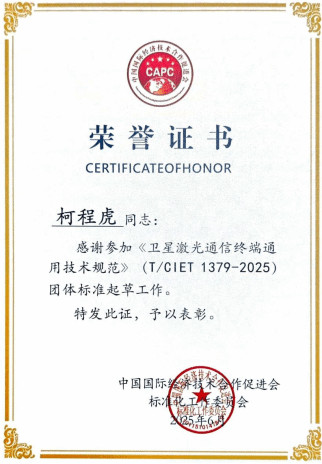 共同起草单位还包括:氦星光联(无锡)航天有限公司、中国科学院微小卫星创新研究院、之江实验室、中国电子科技集团公司第三十四研究所、南京英田光学工程股份有限公司、中科卫星科技集团有限公司、吉林珩辉光电科技有限公司、通标中研标准化技术研究院(北京)有限公司、途邦认证有限公司。