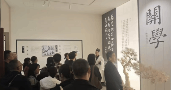 为让游客更好地触摸文化根脉,书院从服务与体验双管齐下,构建全方位温馨服务体系。一方面,书院强化义务讲解服务,志愿讲解团队带领游客溯源每处景点的历史与内涵,龙旗老师还引领大家齐声诵读“为天地立心,为生民立命,为往圣继绝学,为万世开太平”的“横渠四句”,书声琅琅间,文化共鸣在现场激荡;另一方面,针对游客多样化需求,书院提供细节化温馨服务:在入口处设置便民服务点,为未带雨具的游客免费提供一次性雨衣、雨伞;在展厅内增设休息座椅与热水供应点,方便游客驻足休憩;考虑到亲子家庭需求,特别推出“小小文化讲解员”体验活动,让孩子在互动中理解传统文化。