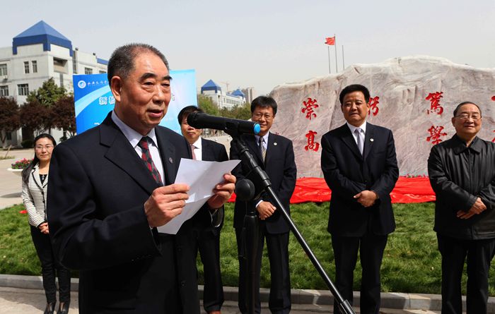 座谈会后,校友们来到南门广场,共同见证了新校训石揭幕仪式这一具有历史意义的时刻。校党委书记雷英杰、校长徐可为和我校校友、著名书法家雷珍民、市政协原副主席陈振虎共同为新校训石揭碑。