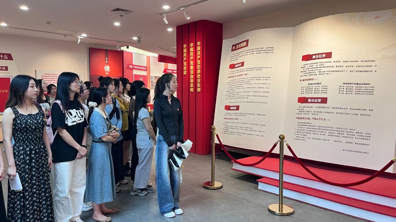 步入警示教育基地,在学院学生党员王婉婷的讲解引导下,依次参观了“省、心、律、诫、儆、光、率、进、诺”九个展区。师生党员身临其境地接受党史教育、纪律教育和警示教育。从一个个鲜活的正面典型到一桩桩触目惊心的反面教材,“照镜自警”不再是句空话,让每一位师生党员在真实案例中感受到法律的威严与公正;从传统廉政文化警句到落马官员的泣泪忏悔,敲响了每一位师生心中的警钟,在灵魂洗礼中增强政治定力、纪律定力、道德定力、抵腐定力;从秦岭违建问题整治到当今生态文明建设,让每一位师生党员深刻领悟到遵纪守法的必要性,更进一步理解了党纪建设的重要性,激励着每位党员成为社会正气的守护者。