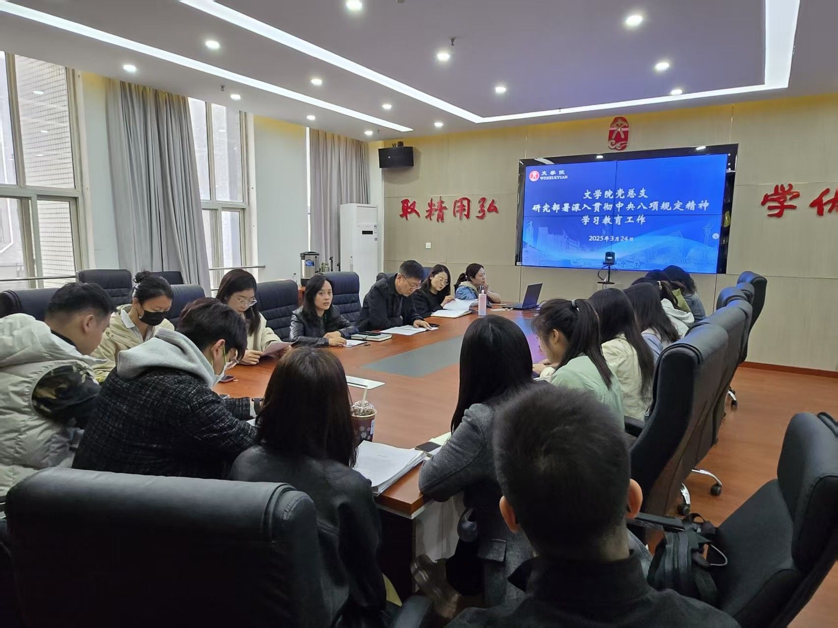 会议强调,开展深入贯彻中央八项规定精神学习教育,是党中央作出的重大决策部署,要把开展学习教育作为一项重要政治任务。一是要加强理论武装,领悟精神实质。二是要坚持对标对表,在严查严纠上下功夫,坚持立查立改、即知即改,确保改有成效。三是要切实让教职员工感受到学习教育带来的新气象,在依靠群众、开门教育下功夫、求实效,着力解决师生急难愁盼问题,让广大师生可感可及。